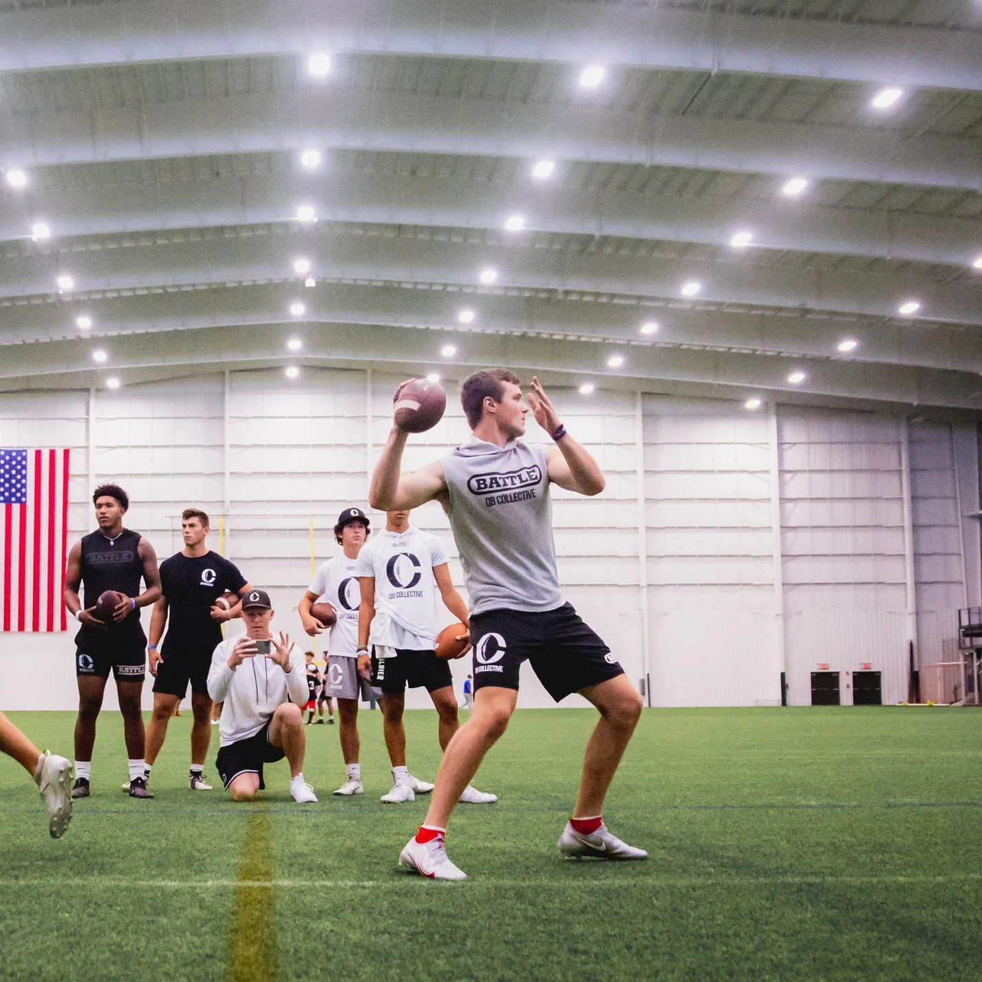We provide unprecedented access to high-level instruction, mentorship, and insight that no other camp can offer—both on the field and in the classroom. Our mission is to elevate the next generation of quarterbacks through a holistic, pro-style curriculum that goes beyond physical training, teaching the mental, strategic, and leadership aspects of the game. At QB Collective, we’re helping build the next generation of quarterbacks.